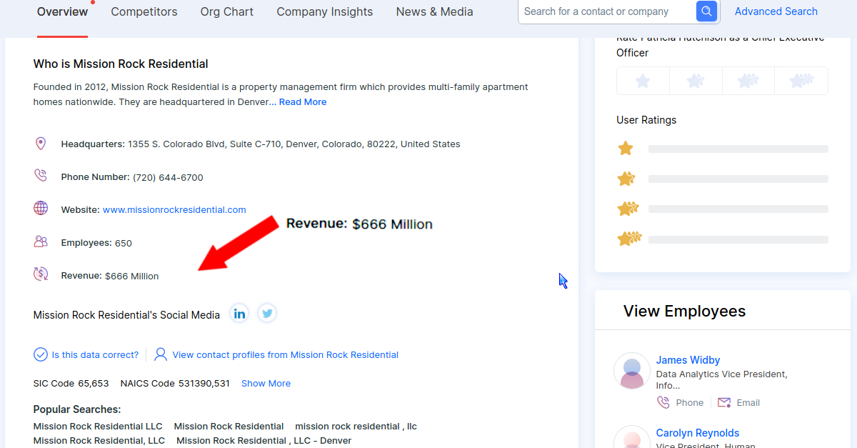 I continued to do further research & came across a company profile of Missionrock Residential that reflects a Revenue amount of $666 million. (I kid you not!) Please check back for updates.